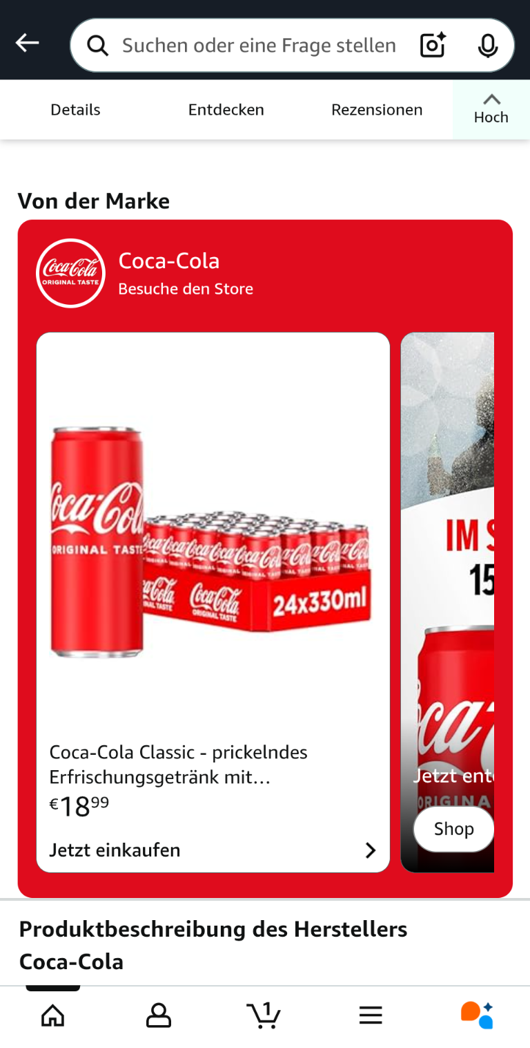 On mobile, Shoppable Collections appear before the A+ content, effectively taking over the space that traditionally introduced the product story. A+ remains visible on desktop, but on mobile it moves down the page, meaning the first impression increasingly rests in the hands of the Collection. As mobile visits continue to rise, the piece of content that occupies this position gains disproportionate influence over browsing behavior.