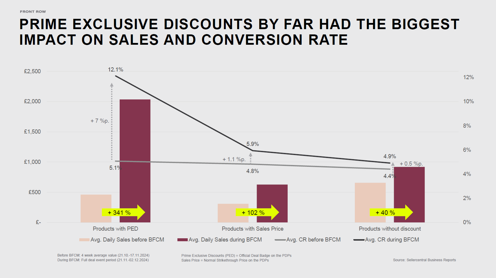 - Products with an Amazon Deal Badge saw a +341% increase in daily sales compared to the pre-BFCM period.