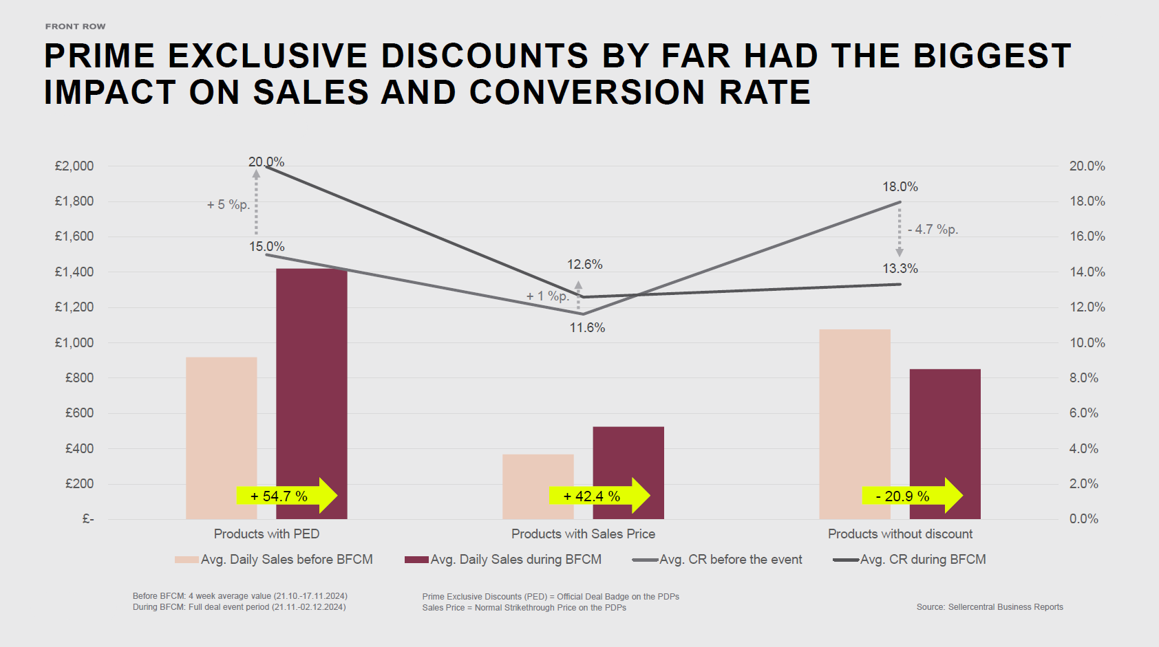 At Front Row, we analyzed the BFCM 2024 performance of one of our clients, a global consumer goods group with a diverse portfolio of personal care, home, and snacking products. What we uncovered reinforced a simple, strategic truth: The presence of a deal badge plays a crucial role in driving performance – beyond the discount itself.