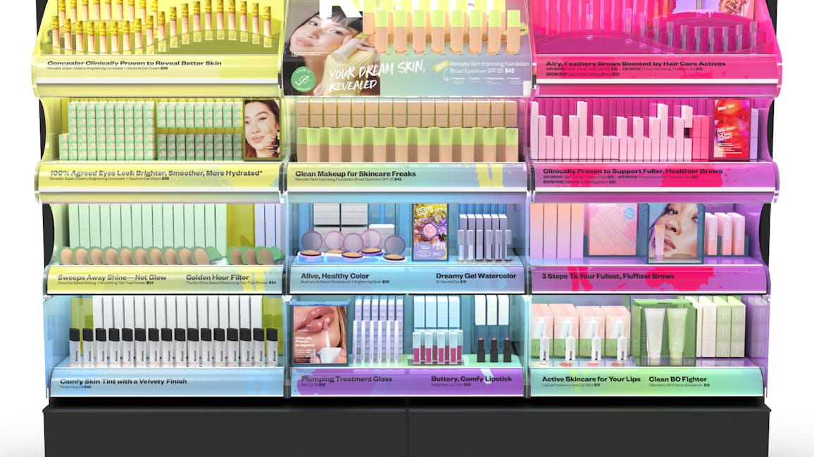 With a fresh rebrand under their belt, Kosas looked to Front Row for a new, vibrant design of their merchandising presence in Sephora. The brand went through a dramatic shift in its brand identity by focusing on founder Sheena Yaitanes’ love of artistry and candy. Kosas has a hyper-focus on clinically proven makeup and easy color, so they needed a new in-store experience that matched the brand’s new look and ethos. We focused on the brand’s conception of color mixing, using bold brand colors and vibrant gradients to build an ownable language in open-sell merchandising. We aligned the brand’s new energy with bright colors, allowing for a larger expression of the brand’s DNA. From the founder’s newfound energy to the products and packaging, we built merchandising around a “Candy Factory” identity, letting bold color guide the way.